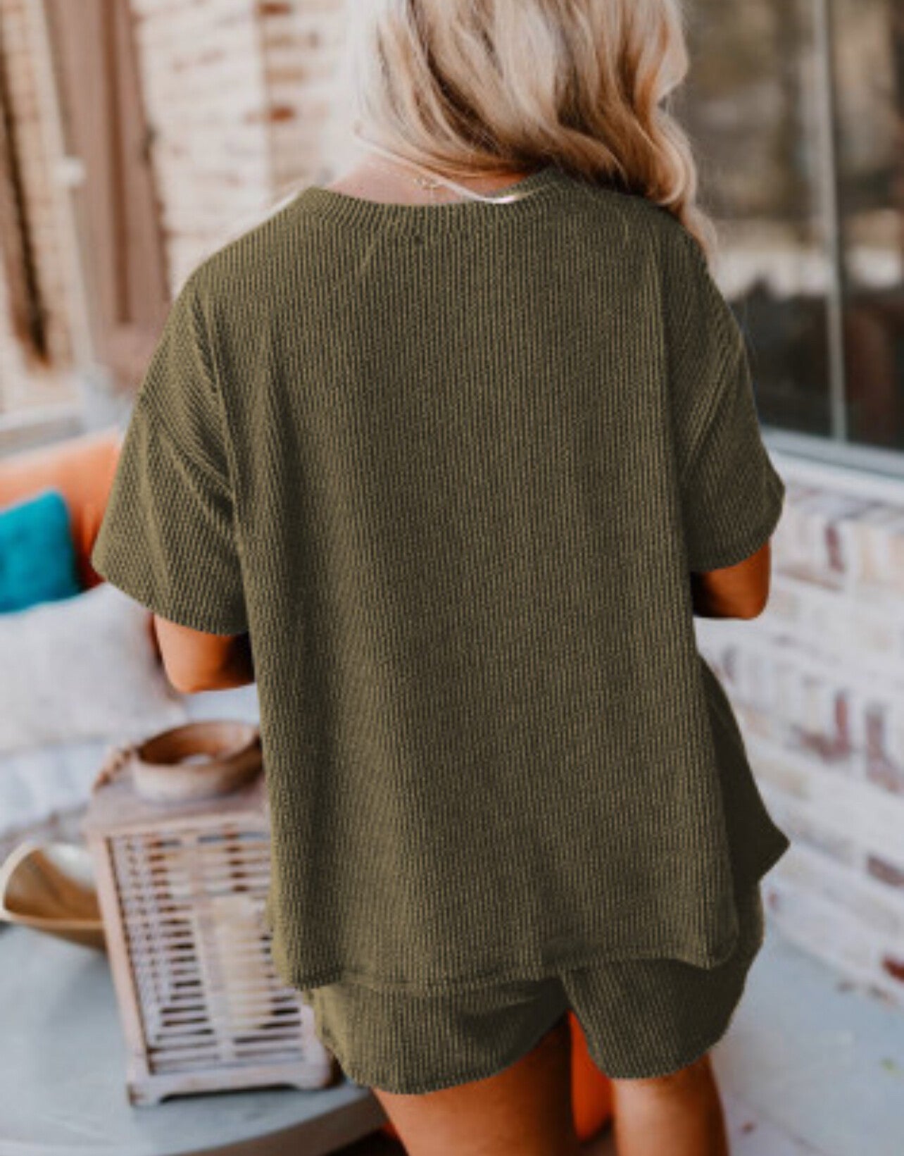 Ribbed Textured Knit Loose Fit Tee & Shorts Set
